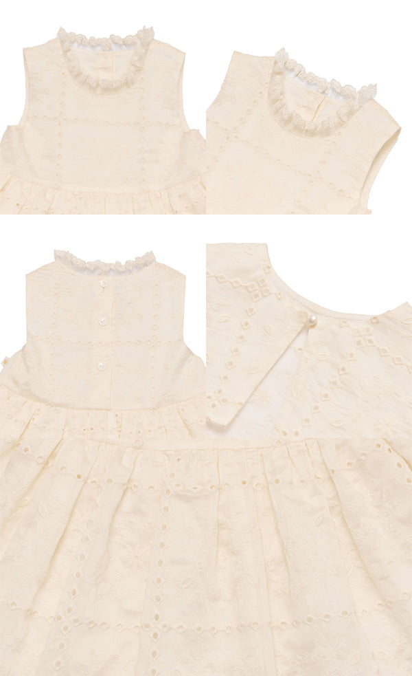 やわらかなクリームカラーにスクエアチェック柄をあしらい、日常を特別なシーンに変えてくれるドレスです。