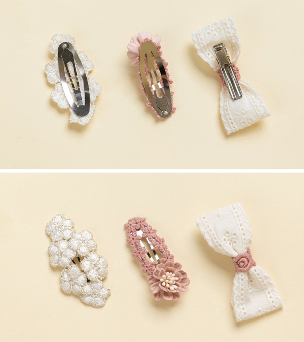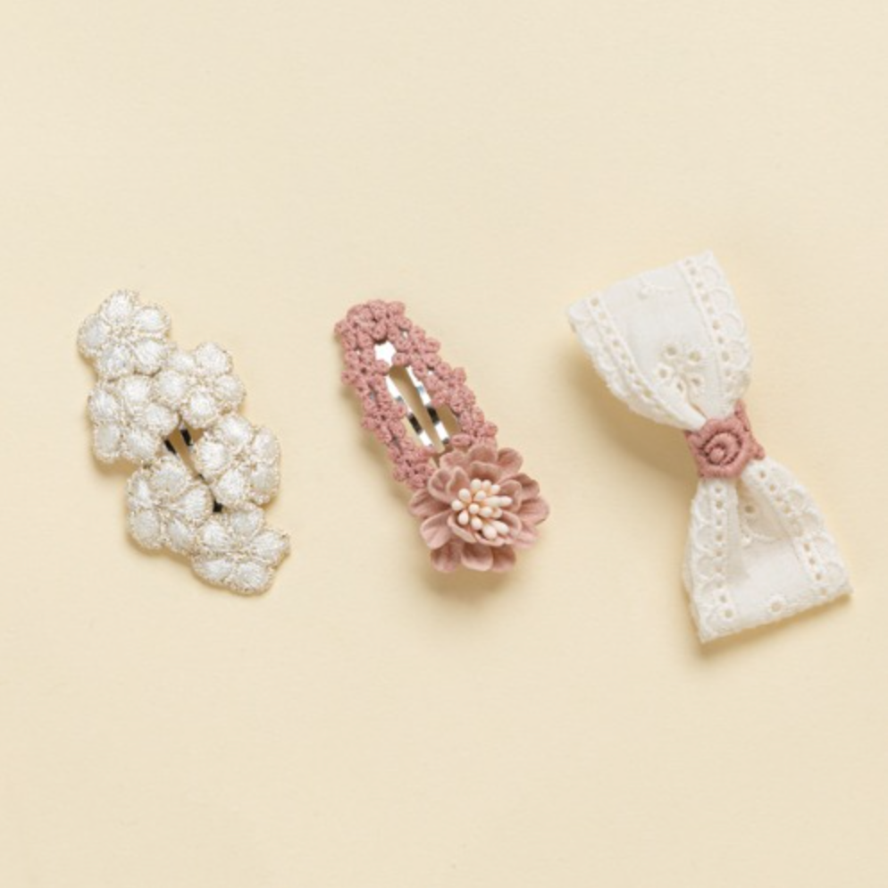 イヴォンヌヘアピンセットは、ワンピースにぴったりの可愛い女の子ヘアピンが3種類セットになっています。いつでも可愛いヘアスタイルを楽しめます。