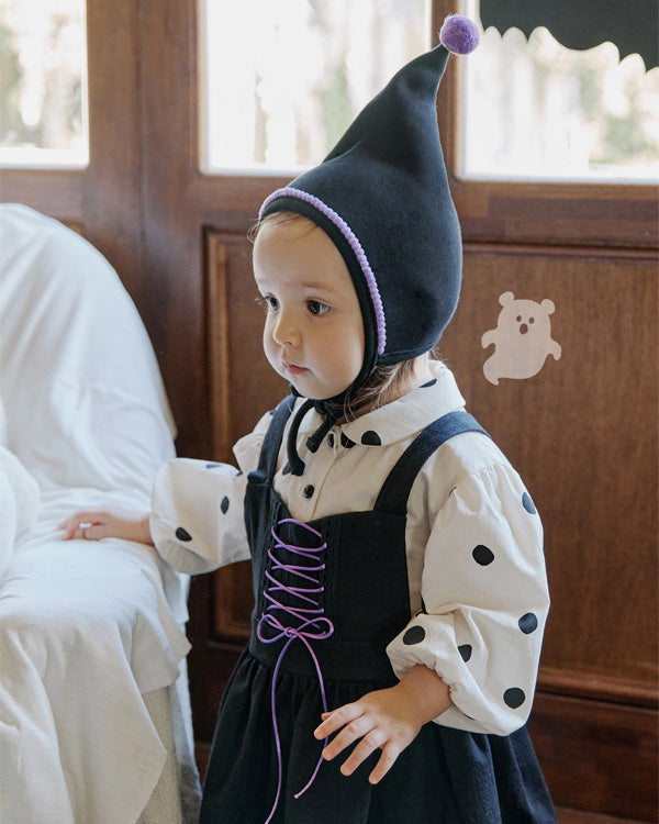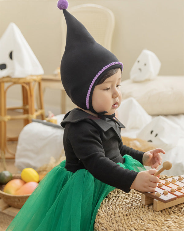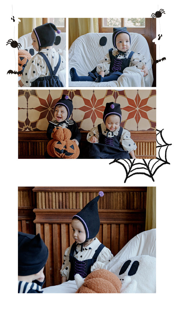 ハロウィンの特別な一日をさらに可愛く演出する「ウィッチ ボネット」。遊び心あるシルエットとクラシックなデザインが、コスチュームコーデをより引き立てます。