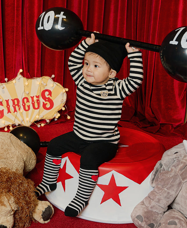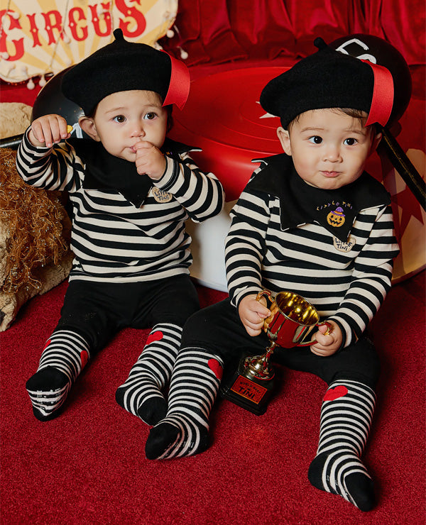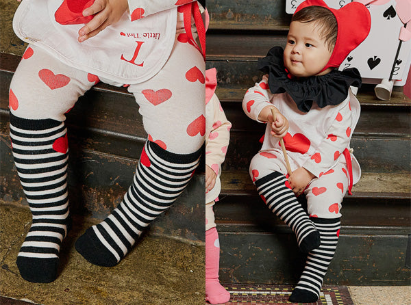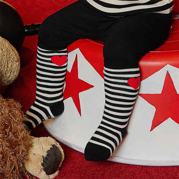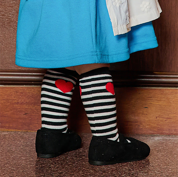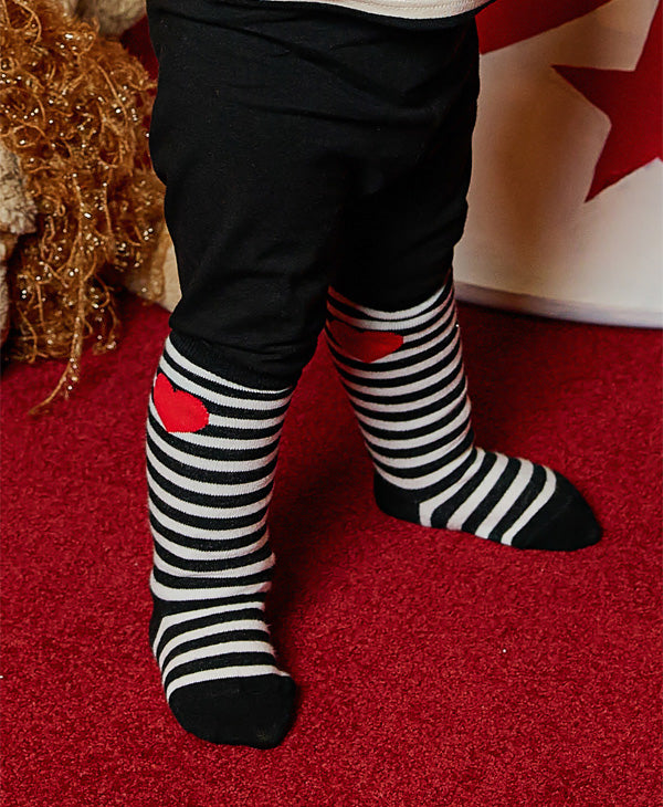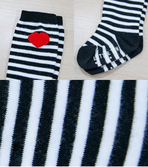 ストライプ柄にハートがワンポイントのかわいい靴下