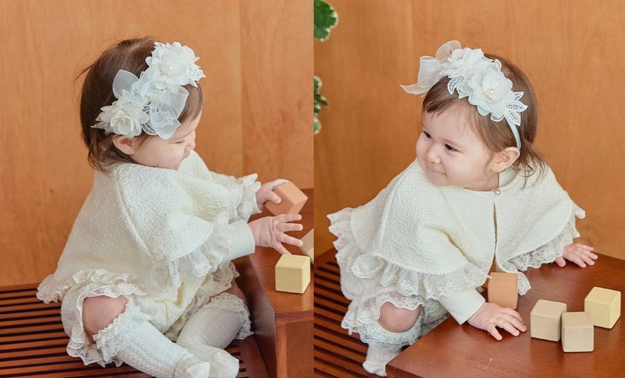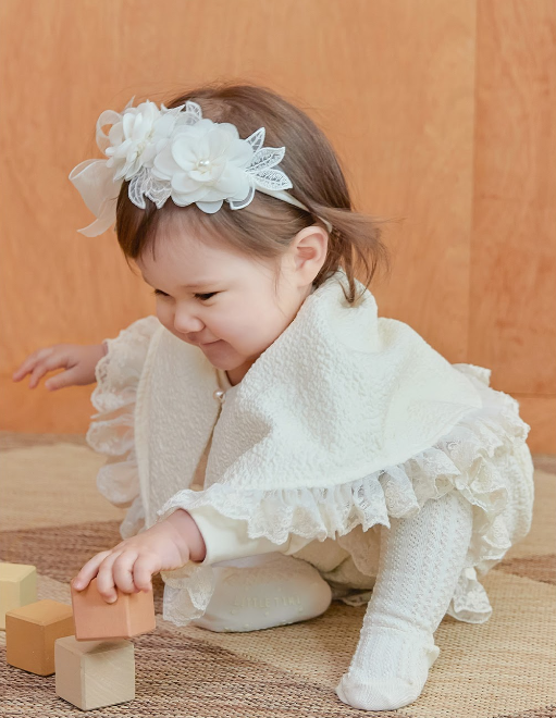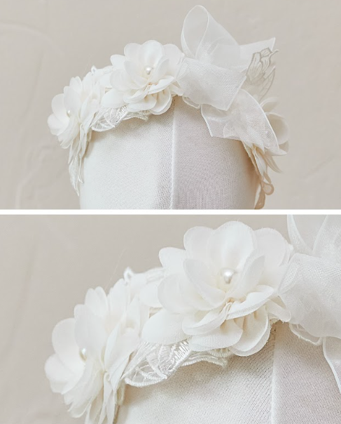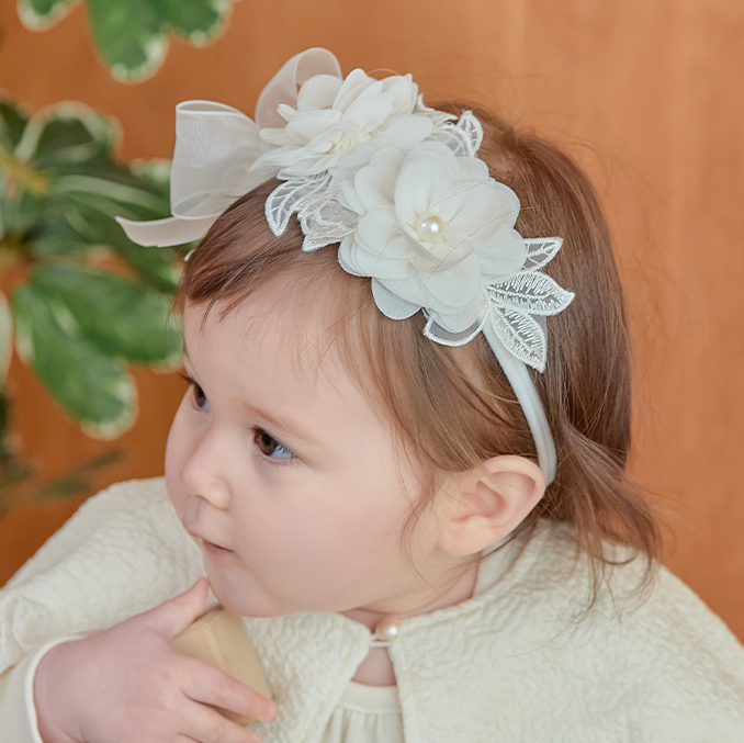 キャサリンヘアバンドは、お花とリボンがアクセントになったアイボリー色のヘアバンドです。ワンピースとの相性抜群で、華やかな雰囲気を演出します。普段のファッションに可愛さと上品さをプラスするアイテムです。