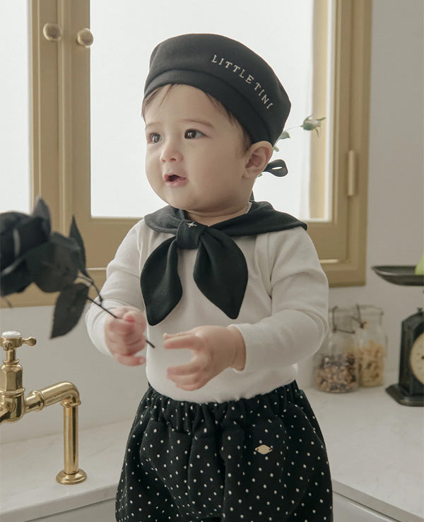 やわらかな素材感で首元にやさしくフィットし、快適な着け心地。長さ調整がしやすく、成長に合わせて長くお使いいただけます。