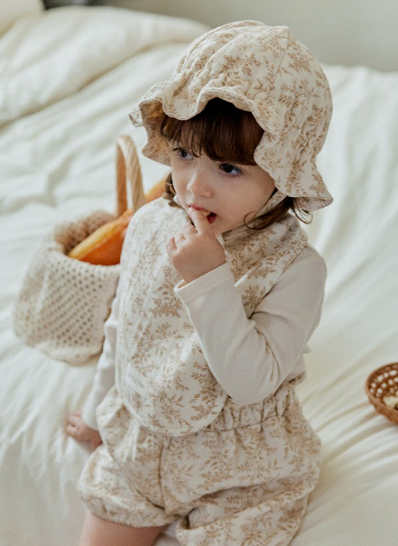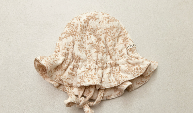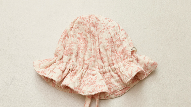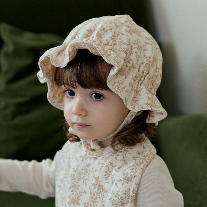 このジャスミンバケットハットは、コットン100%で暖かく、紐が付いているため、固定しやすいです。おしゃれで可愛い女の子赤ちゃんのおでかけに最適なアクセサリーです。特別な日のヘアアクセントとして、とても可愛らしくお使いいただけます!