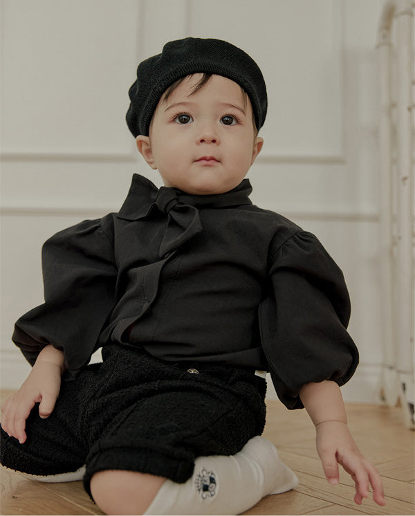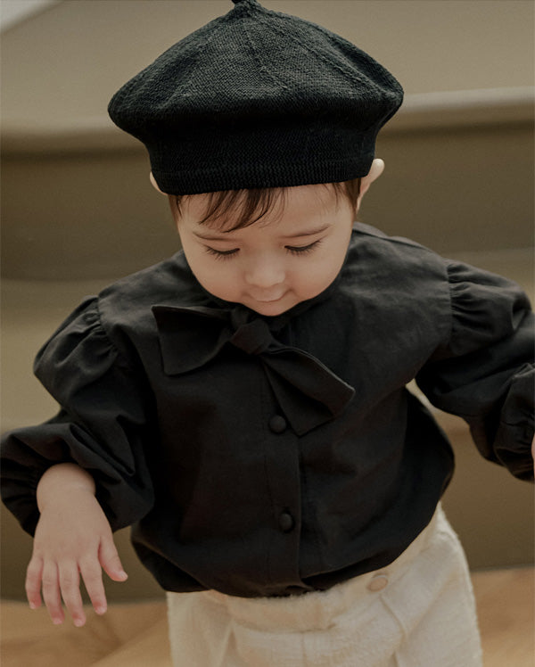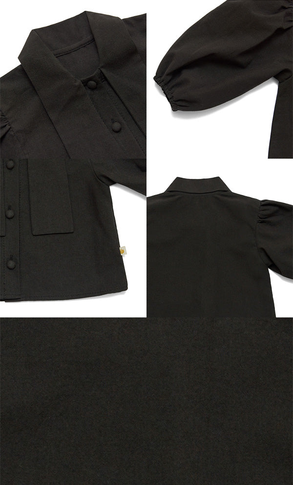 一枚で装いを引き締める、上品なブラックのタイブラウス。ベーシックなブラウスデザインにタイディテールをプラスし、きちんと感と華やかさを両立させました。