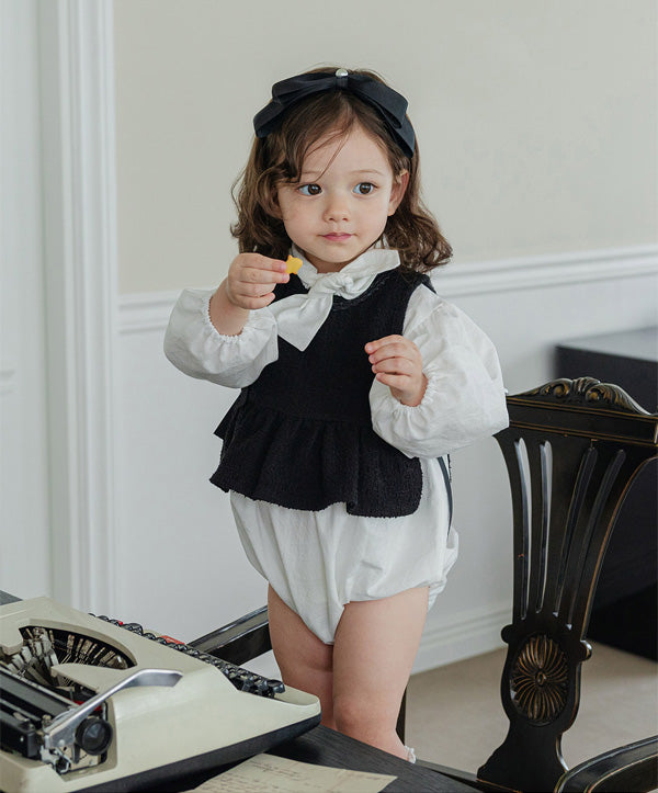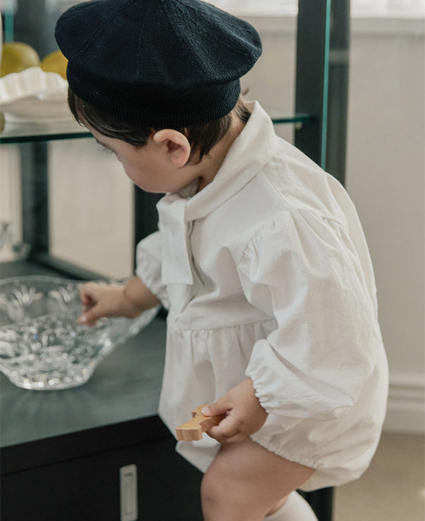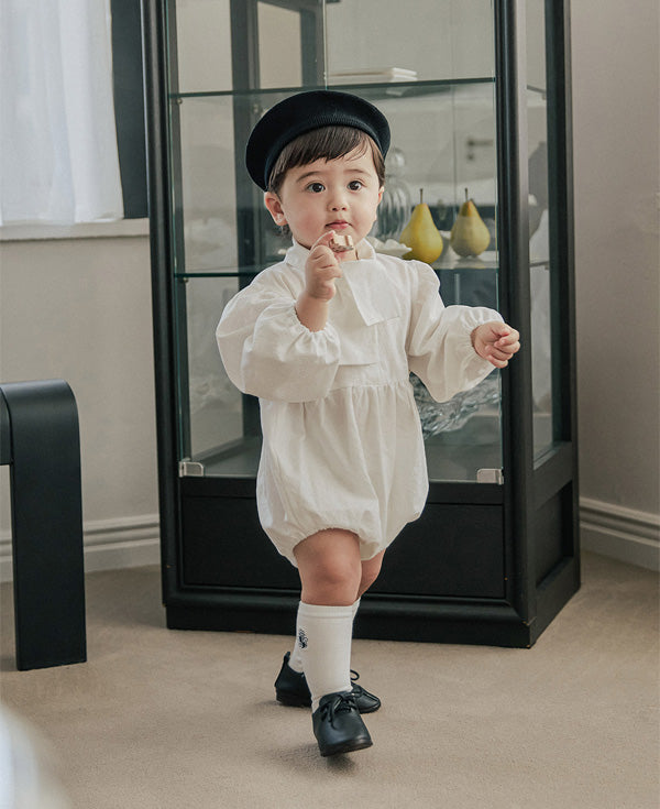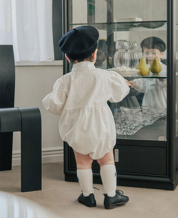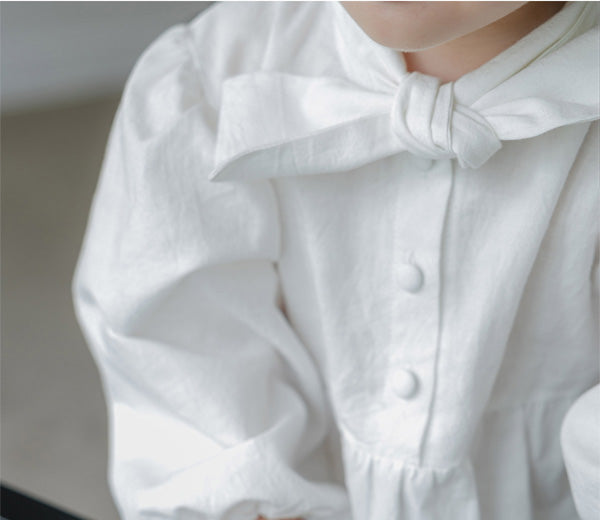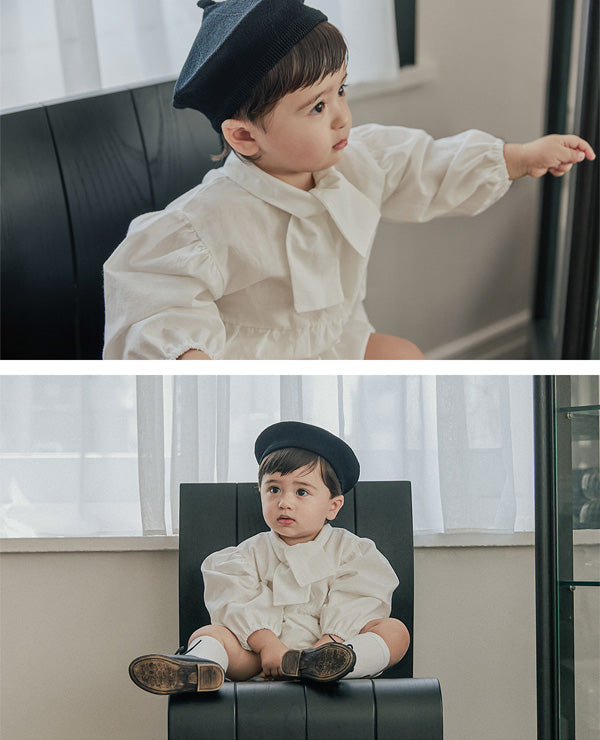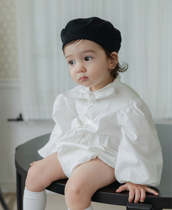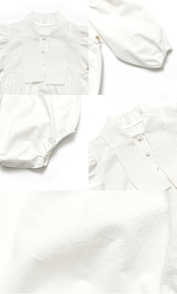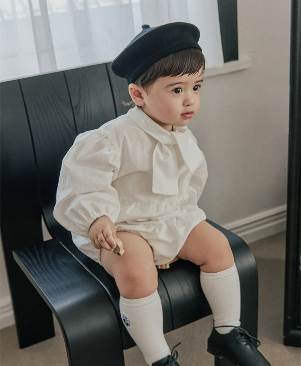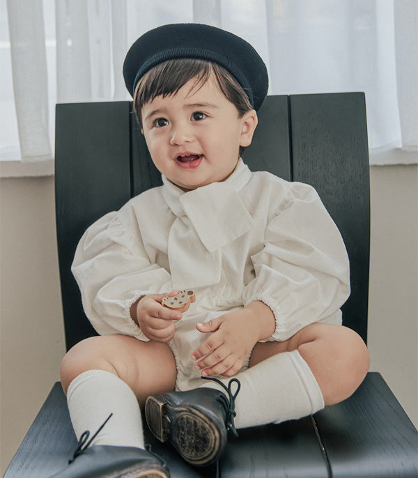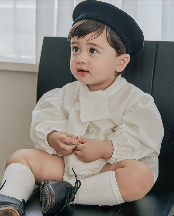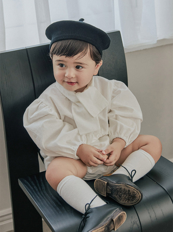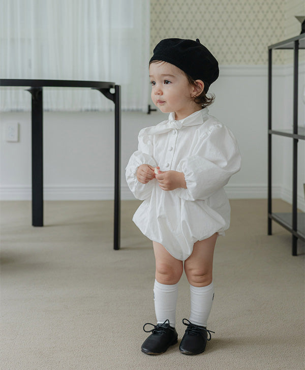清潔感のあるホワイトに、胸元のリボンが特徴的な「タイ ボディスーツ」。ふんわりとしたパフスリーブが程よいボリューム感を与え、シルエットに立体感をプラスします。