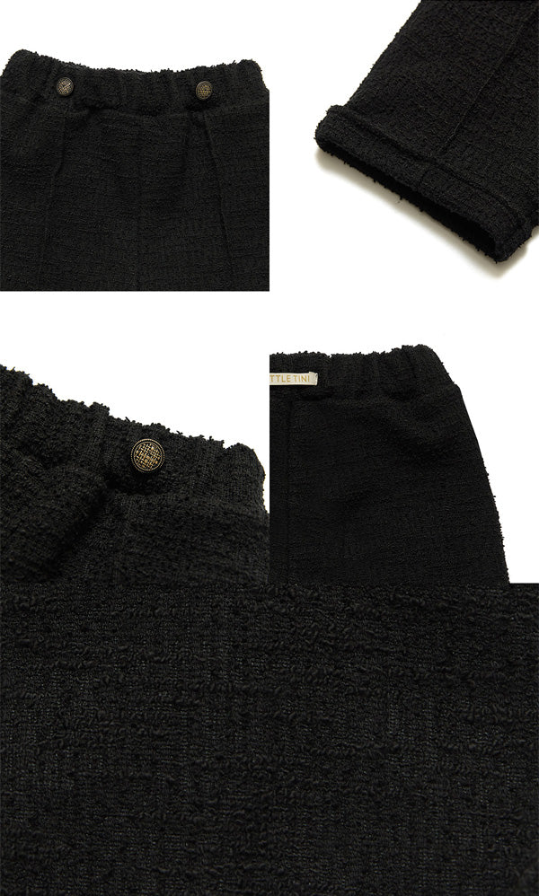 立体感のあるツイード生地ならではの高級感が漂い、ジャケット・ベスト・ブラウスなどとのセットアップはもちろん、単品使いでもコーデの主役になるアイテムです。きれいめなテーパードシルエットで仕上げており、足がすっきり見えるだけでなく、ブラックカラーの落ち着いたトーンでどんなトップスとも相性抜群です。