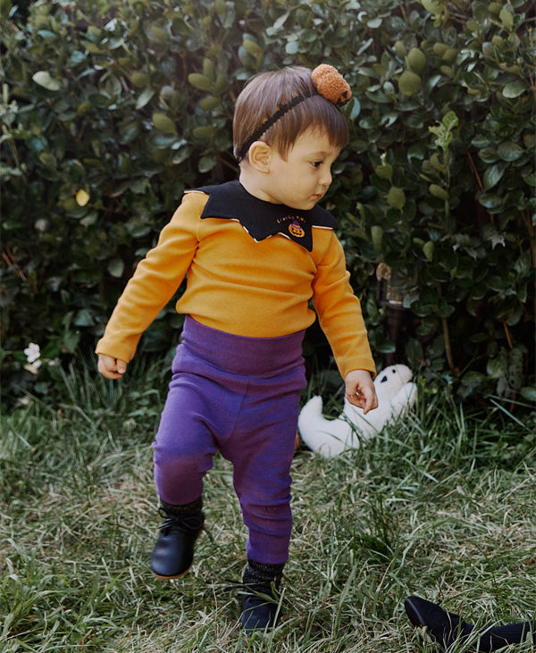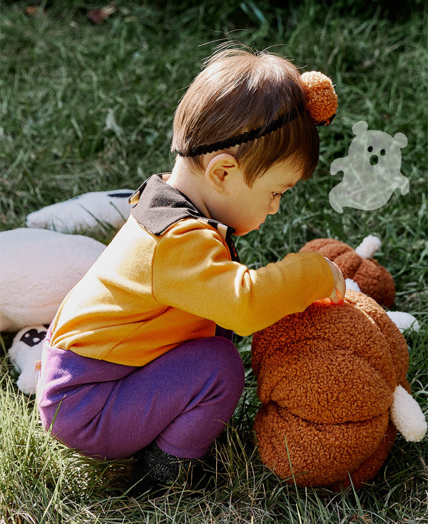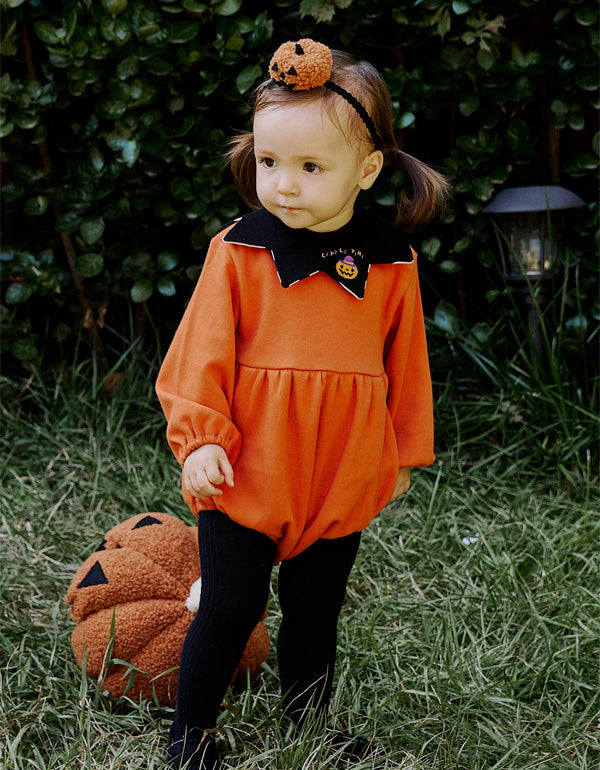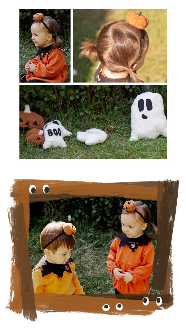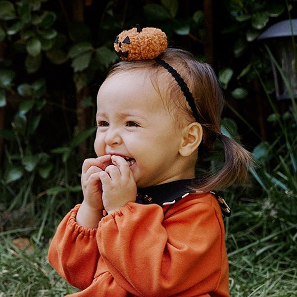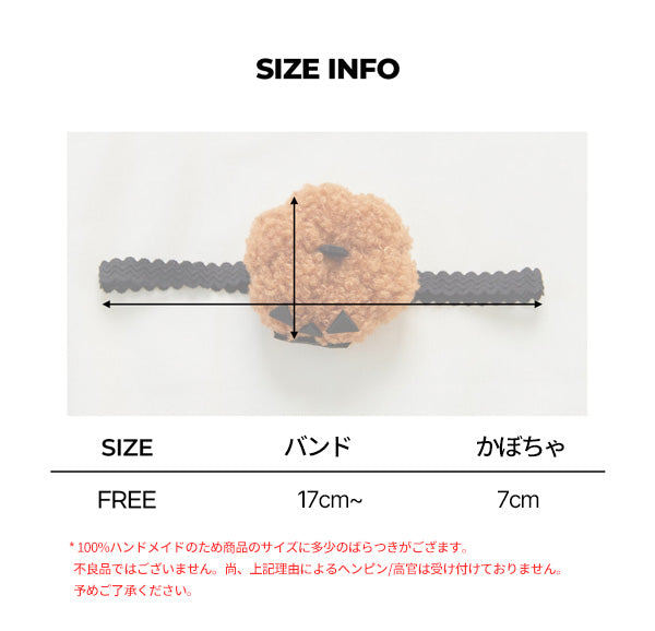 ふわふわの生地を使用し、やさしい肌触りの、かわいいかぼちゃ付きヘアバンドです。