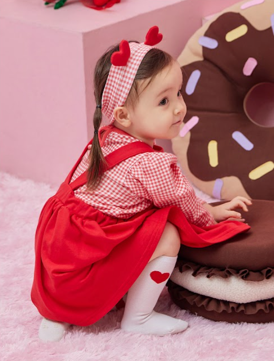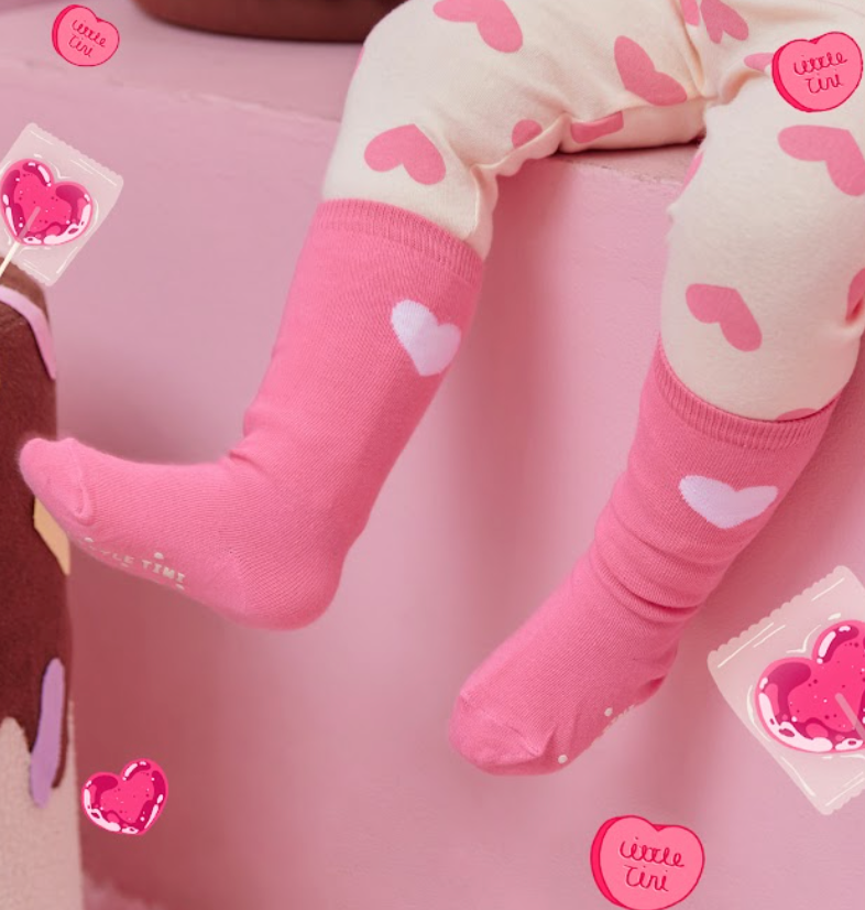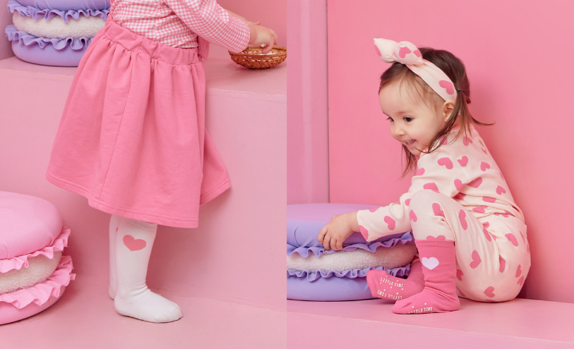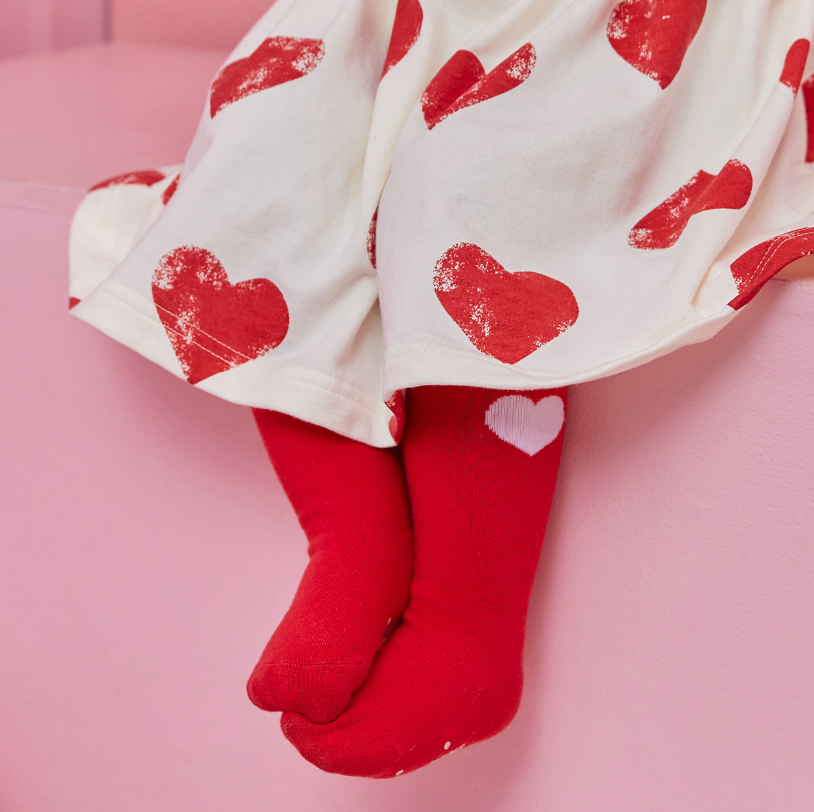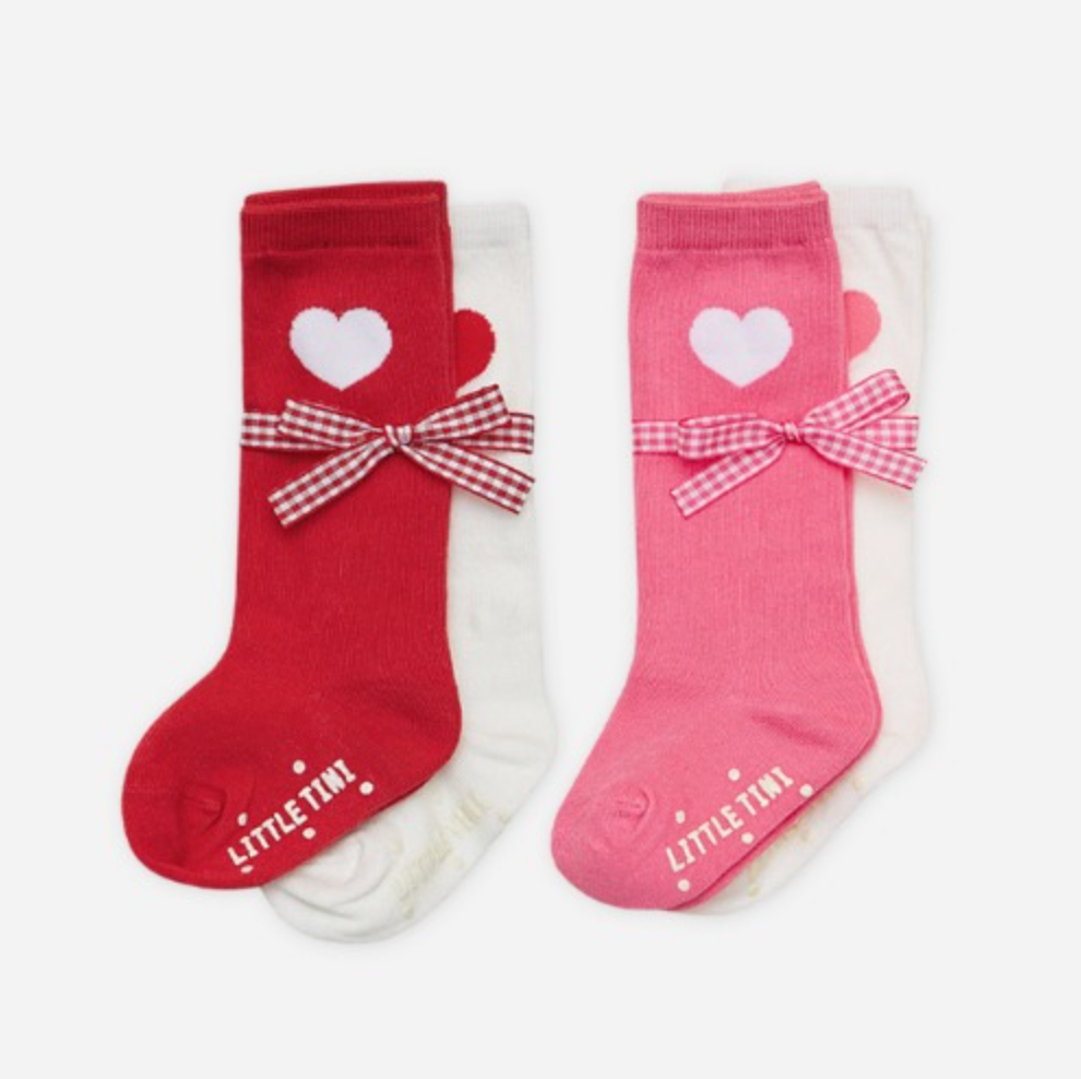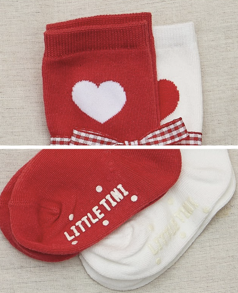 ハートポイントがある赤色とピンク色の靴下2色セット。リボンが付いているので、キュートな足元になります。様々なスタイルに合わせやすいので、ファッションの幅が広がります。