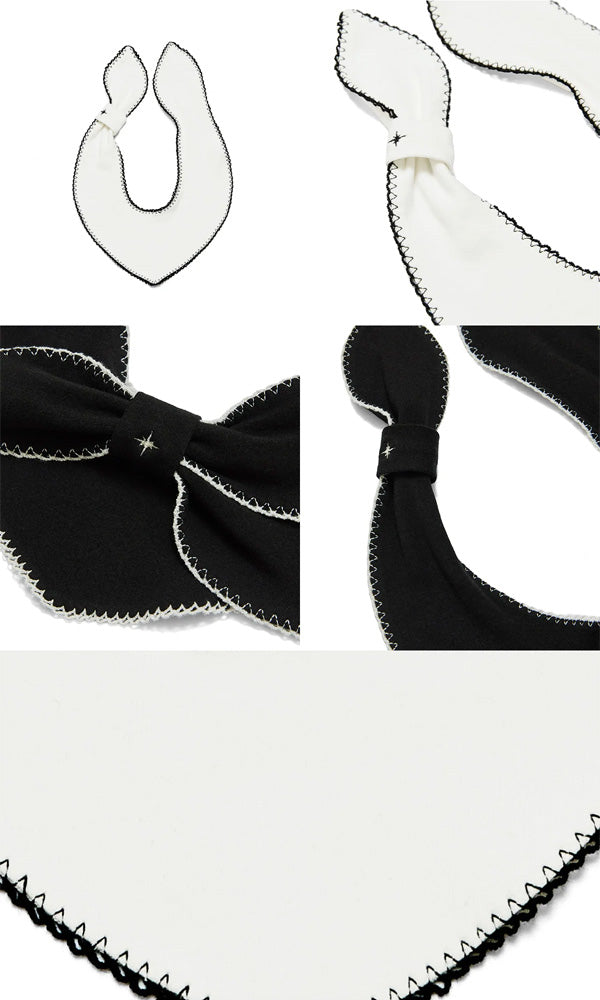 首元に沿って自然に落ちるシルエットが上品な印象を演出し、縁にあしらわれた繊細なディテールが、シンプルなコーディネートにも程よい存在感を与えます。