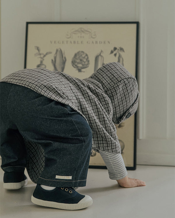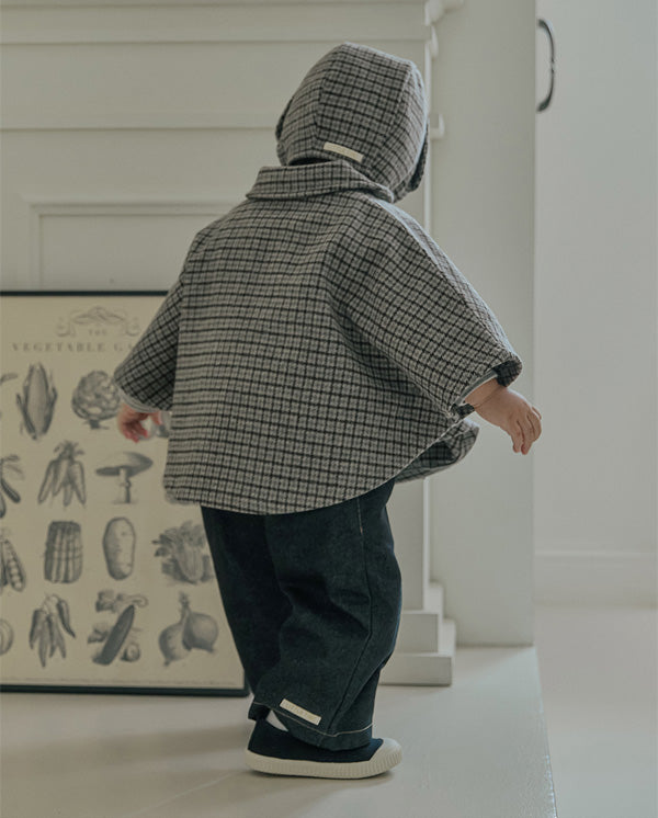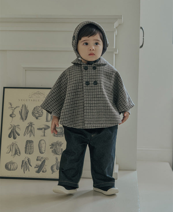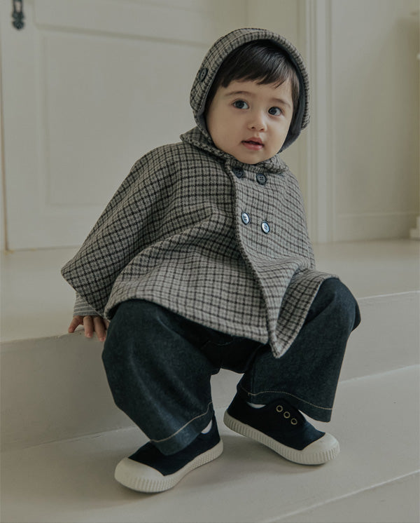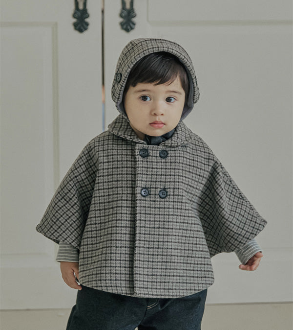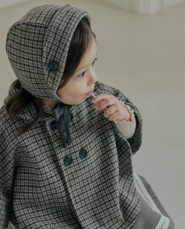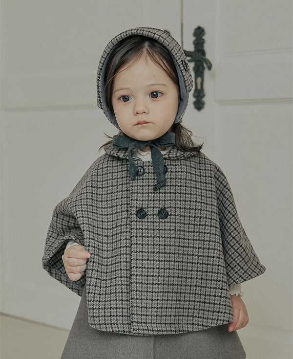 襟付きデザインがシルエットを引き締め、ダブルボタンのアクセントが安定感とクラシカルな印象をプラスします。同シリーズの「モンシェールハット」と合わせれば、まるで絵本のワンシーンのようなクラシックコーデが完成します。