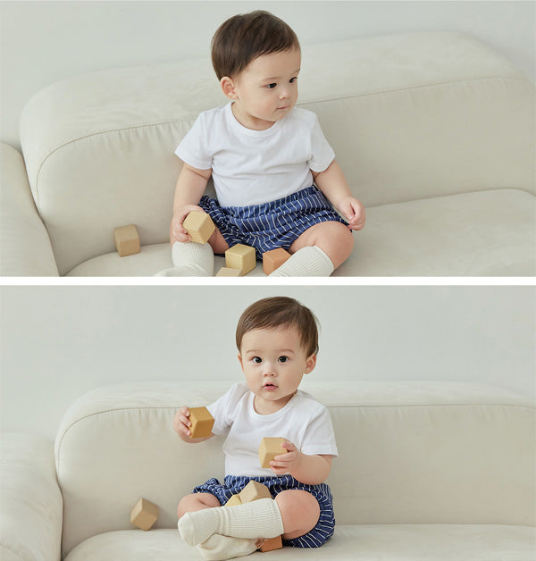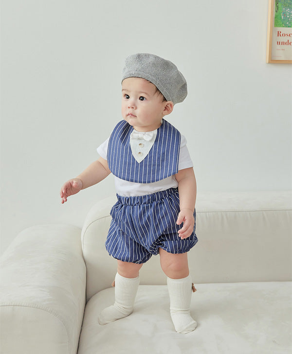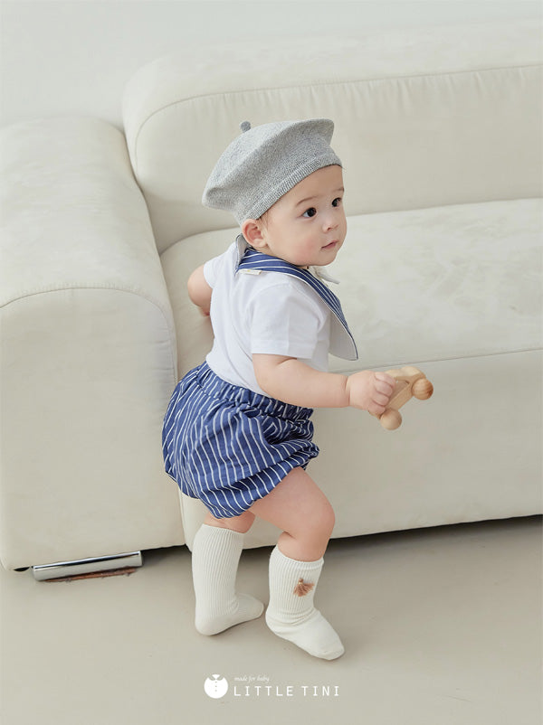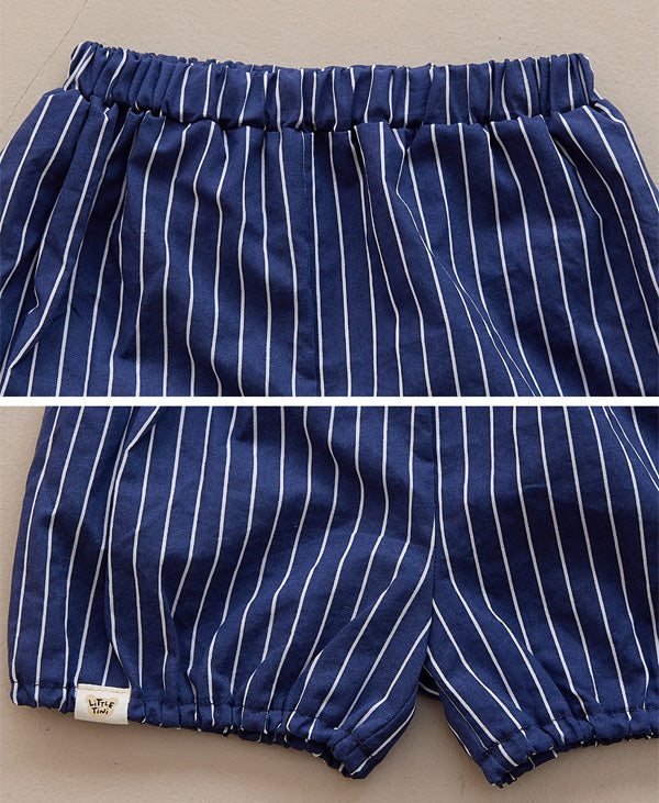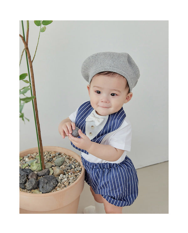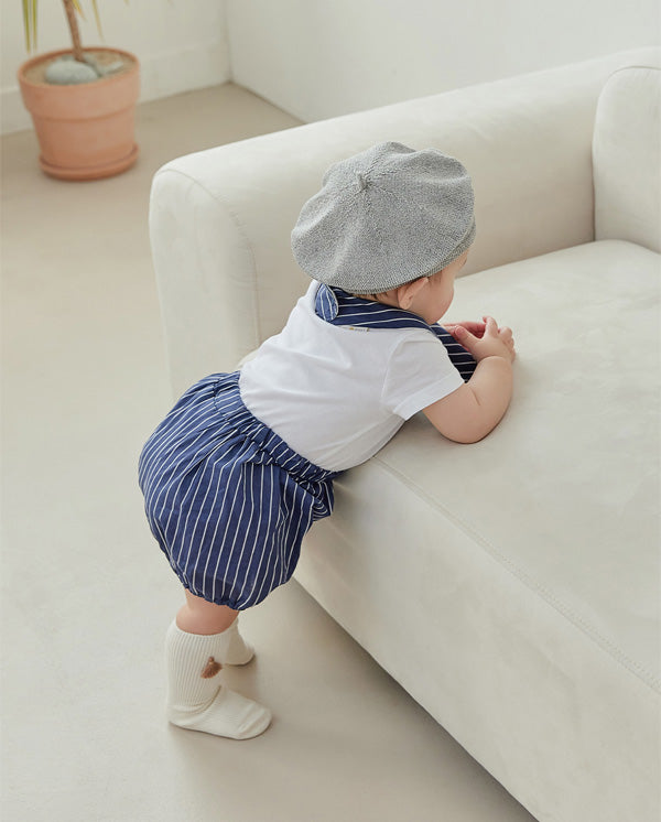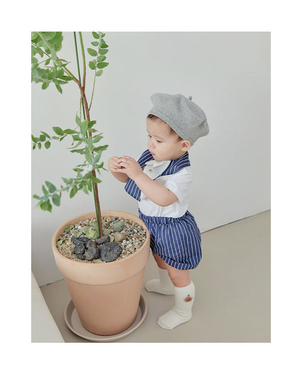 洗練されたストライプ柄の生地を使用した「ラスク ブルマー」は、ふんわりとしたシルエットが着用時にさらに可愛らしさを引き立てます。