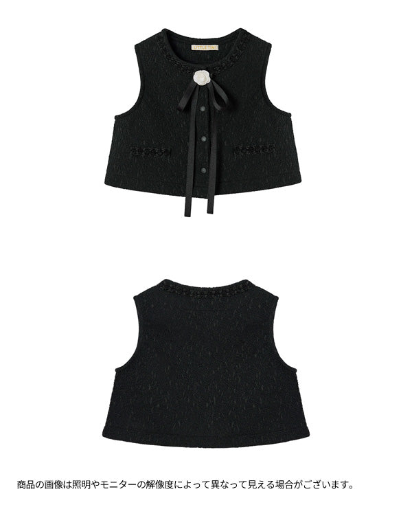 単色ながらも立体感のあるテクスチャーが、装いに奥行きと上品さをプラスし、無駄を省いたノースリーブデザインにネックラインに沿って施したリズミカルなプリーツディテールが顔まわりをすっきりと演出。